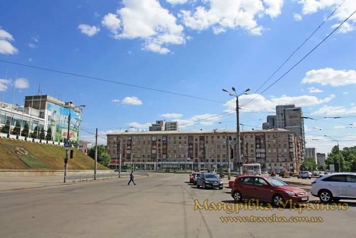 У першій половині 19 ст. розпочалися роботи з благоустрою площі – побудували дерев’яні сходи з площі на гірку, що розташовувалися дещо північніше. В 1868 р. замість дерев’яних було побудовано кам’яні сходи вже на нинішньому місці. В 1957 р. за проектом архітекторів Б. Клейна та І. Приходько сходи були реконструйовані та стали своєрідним завершенням перспективи вулиці Полтавський шлях.