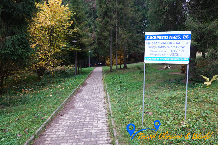 Джерело №25 та №26 містять воду з високим вмістом гідрокарбонатів, сульфатів, кальцію та магнію, а також підвищеним вмістом органічних речовин. Ця вода є слабомінералізованою та має виражену сечогінну дію. Рекомендується при хронічних пієлонефритах, циститах, гепатитах, холангітах, холециститах, після хвороби Боткіна та після операцій на нирках.