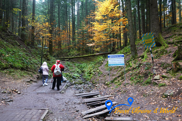 Піший маршрут до джерела №3 проходить через мальовничу кам’яну доріжку, уздовж якої розташовані сувенірні лавки. Це місце зачаровує своїми пейзажами, а поруч із джерелом є сходи на пагорб, який веде до лісу, ідеального для прогулянок. У лісі можна зустріти білочок, тому не забудьте прихопити горішки, щоб пригостити цих милих тваринок.