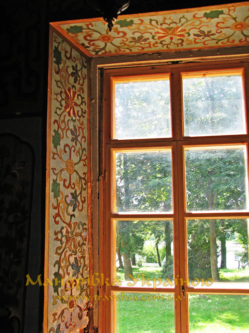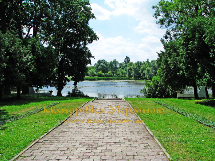 Парадний фасад палацу виходить до озера, а парковий до галявини з фонтаном та чудовим парком, що займає 16,6 га. Парк створено відомим пейзажним архітектором Діонісієм Міклером.