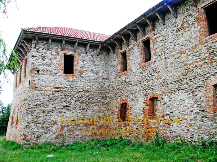 Господарські будівлі західної частини замку з церквою та баштою слугували стіною. У центрі замку височіла дерев’яна сторожова вежа.