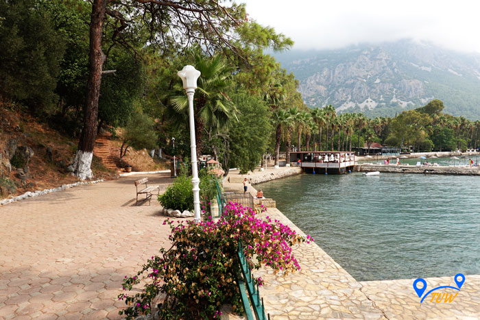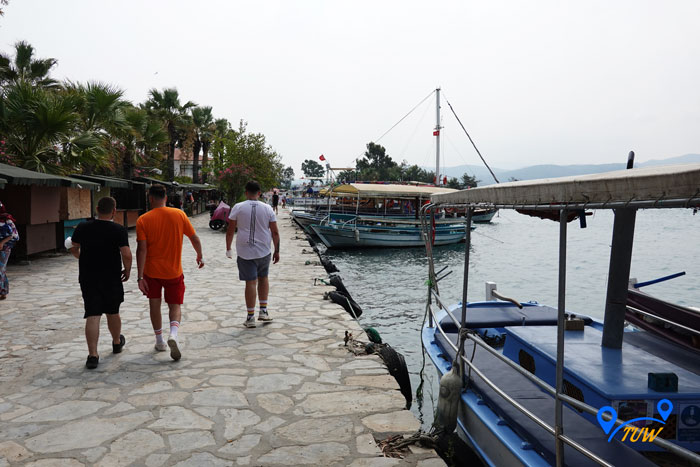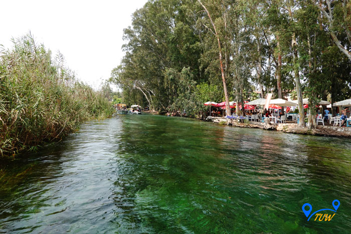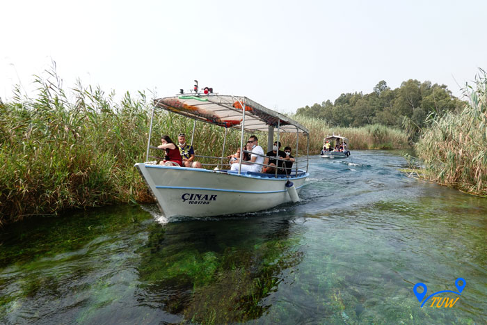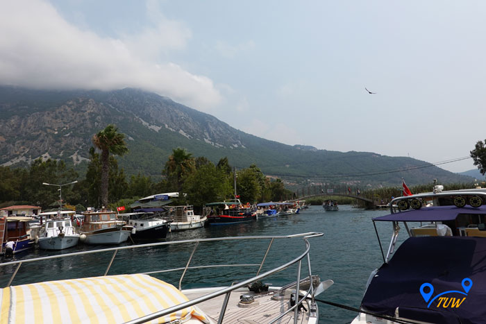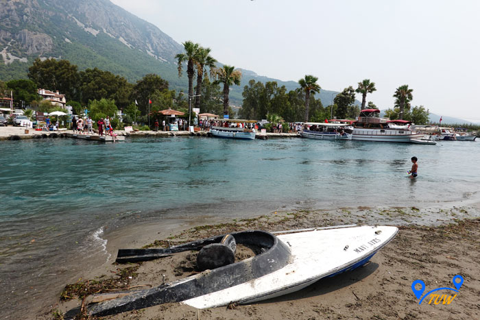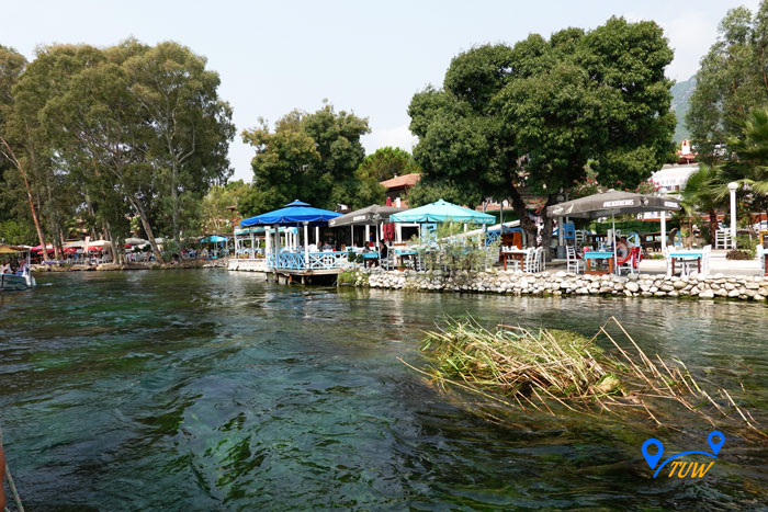 На причалі стоять численні човники, які катають туристів по річці. Вартість такої розваги 15 лір (~ 1,5 євро) з людини. Рекомендуємо покататися, дуже круто, а дно в струмку кришталево-прозоре, ви такого точно не бачили, таке відчуття що дивишся в акваріум, де все переливається різними кольорами, дуже красиво. У нас навіть грав скрипаль на носі човна, дивіться відео.