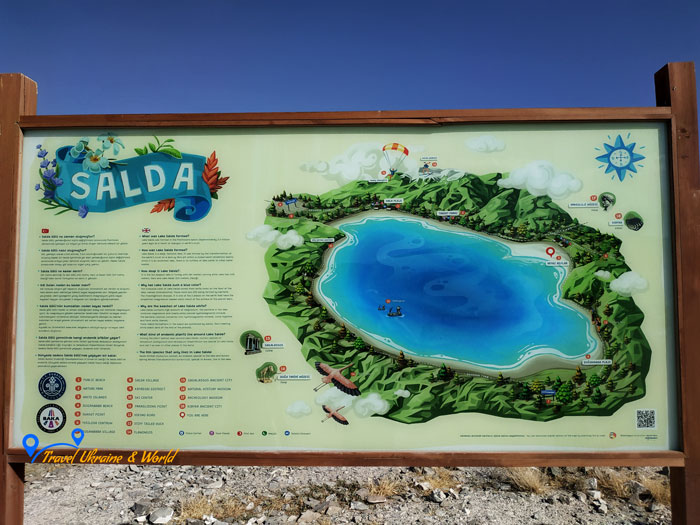Озеро Salda знаходиться в районі Бурдур, це на південно – заході Туреччини. Салда це кратерне озеро середнього розміру з площею 4370 га., та глибиною у 196 м., що робить його одним з найбільших та найглибших озер Туреччини.